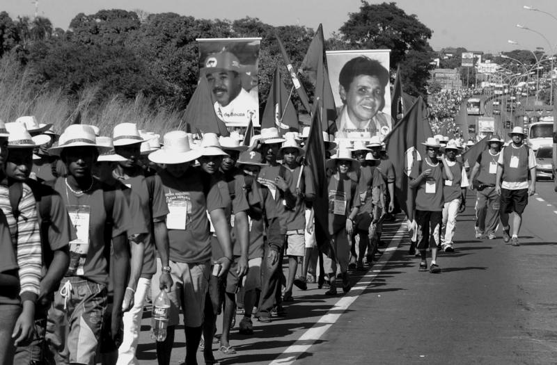تعتبر المسيرات والتظاهرات الشهيرة التي تنظمها «حركة البدون أرض» في مختلف أنحاء البرازيل، مناديةً بالثورة ضد النظام السياسي، في الفترة ١٩٩٥ ــ ١٩٩٩من أقوى أشكال التعبئة في المجتمع المدني بشكل عام. ويمكن لتلك التظاهرات أن تتخذ شكل الصيام والإضراب عن الطعام، والاعتصام أمام المؤسسات الحكومية واحتلال المنشآت العامة، بقصد فضح تقصيرها عن القيام بواجباتها على الملأ وإجبارها على الخوض في مفاوضات.