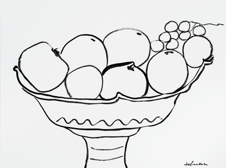 من مناطق الدهشة تأتي، ومن عالم السؤال. وهي لا تنفكّ تبحث وتتساءل. ترسم وتكتب كما لو أنها بدأت الرسم والكتابة الآن. بالنضارة نفسها وبالعزيمة نفسها. على جدران صالة العرض الفسيحة، عُلِّقَت لوحاتها الزيتية الصغيرة، الواحدة بجانب الأخرى، بالإضافة إلى رسوم بالفحم والحبر الصيني، بينها رسم منفَّذ بخطوط رشيقة، حرّة، يمثّل رفيقة دربها سيمون فتّال.